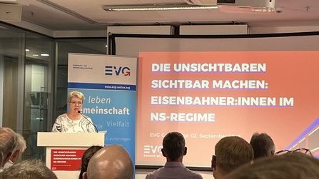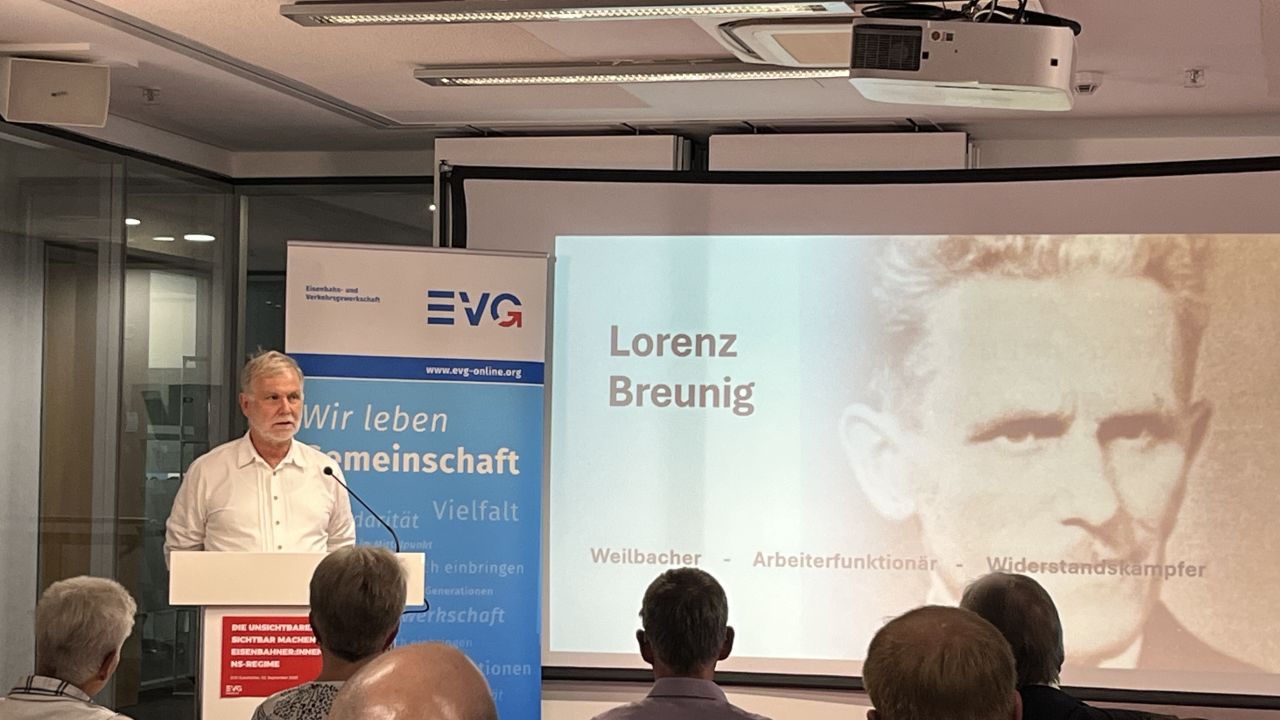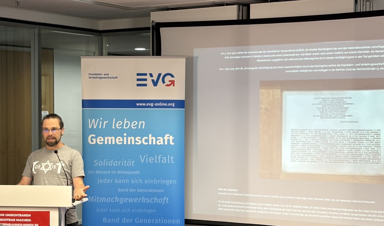 Kolleginnen und Kollegen sichtbar machen, geben wir ihnen ein Stück ihrer Würde zurück“, betonte der EVG-Vorsitzende Martin Burkert bei der Eröffnung. „Wir holen sie aus der Anonymität der Geschichte - und wir sagen als Gewerkschaft laut und deutlich: Diese Menschen gehören zu uns.“