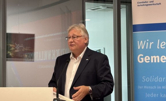 Viele Eisenbahn-Gewerkschafterinnen und -Gewerkschafter hatten sich nach der Zerschlagung der Gewerkschaften 1933 dem Widerstand angeschlossen und diesen Mut mit ihrem Leben bezahlt. „Diese Menschen verdienen nicht nur unser Gedenken, sie verdienen unseren Respekt. Und sie verdienen es, dass wir ihre Geschichten weitertragen - über die Mauern unserer Zentrale hinaus“, erklärte Burkert.