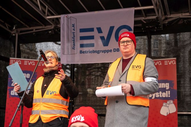 Solidaradressen gab es während der Kundgebung an den verschiedenen Standorten von zahlreichen EVG-Betriebsgruppen, demokratischen Parteien (Linke, Grüne/Bündnis90, SPD). In einem großen Protestzug zogen die Demonstrierenden im Anschluss durch die Frankfurter Innenstadt bis zum Hauptbahnhof und setzten damit ein öffentlich sichtbares Signal ihres Protests.