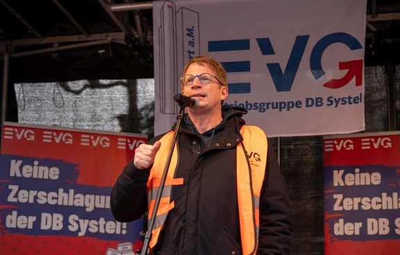 In die gleiche Kerbe schlug auch Philipp Jacks, der die solidarischen Grüße des DGB überbrachte. „Dass der Vorstand der DB AG offensichtlich nicht weiß, was er will, ist eine Frechheit. Der Deutsche Gewerkschaftsbund stärkt dem Betriebsrat, wie auch der EVG, den Rücken.“