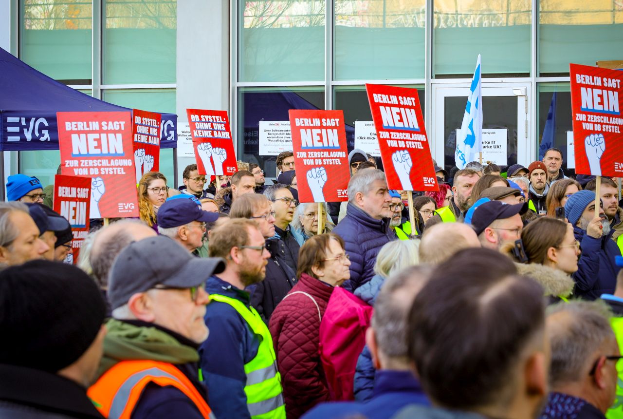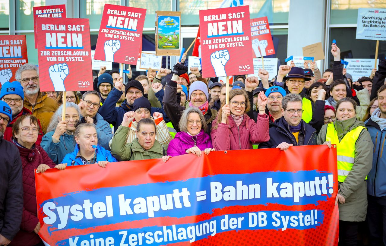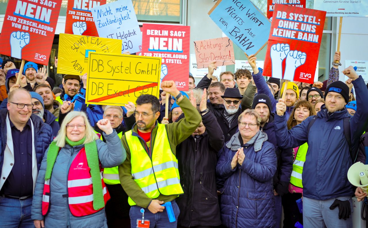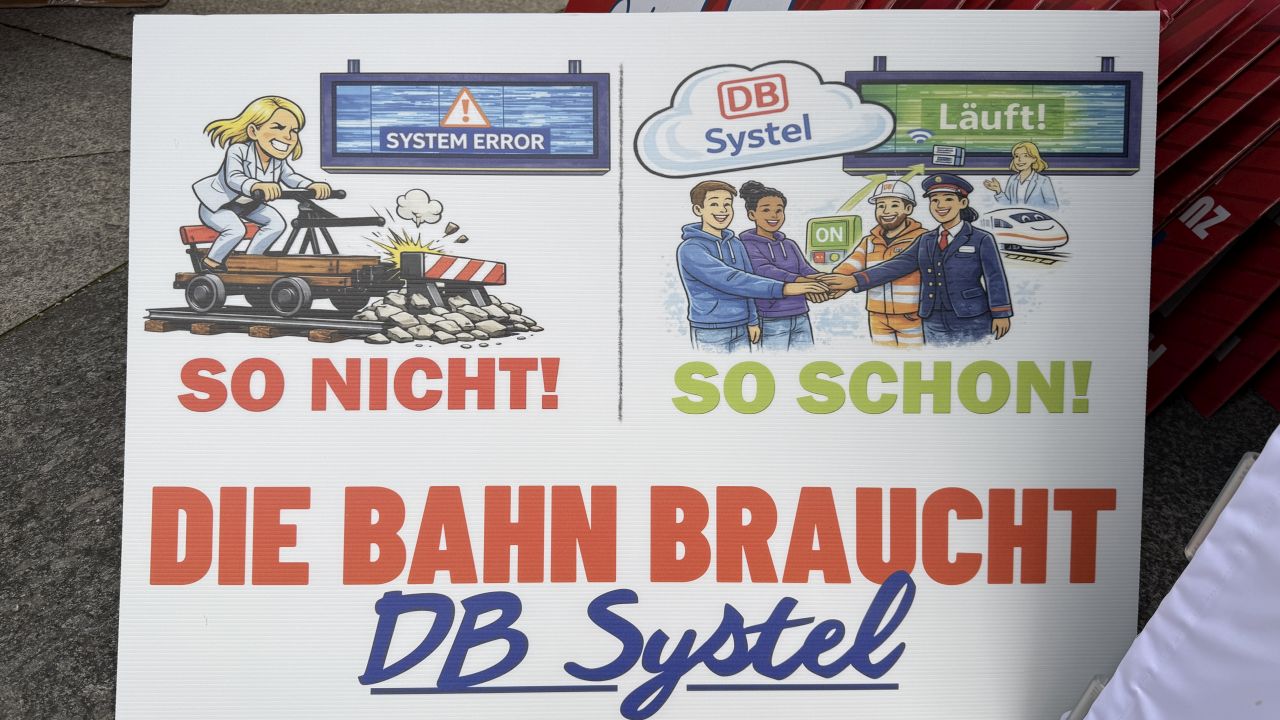 Die Deutsche Bahn steht vor einem massiven Umbau - und ausgerechnet ihr digitales Rückgrat soll dabei geschwächt werden. Nach aktuellen Plänen könnten bei DB Systel bis zu zwei Drittel der Arbeitsplätze wegfallen. Daher haben am Mittwoch in Frankfurt/ Main, Berlin und Erfurt Protestaktionen stattgefunden.