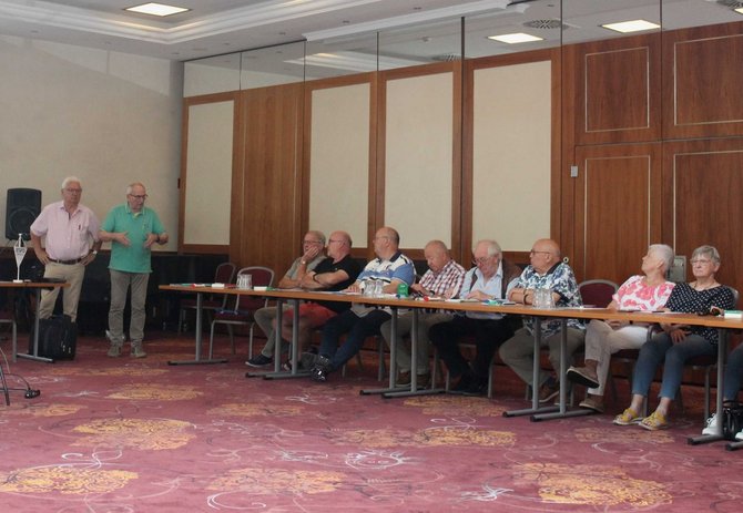 Heinrich Klumpe begrüßte als Vorsitzender der Landesseniorenleitung Niedersachsen/Bremen insgesamt 44 Teilnehmer:innen im Hotel Lamm in Veitshöchheim bei Würzburg. Sie erwartete ein umfangreich- und abwechslungsreiches Wochenprogramm.