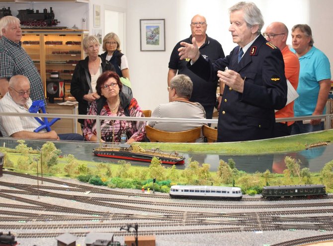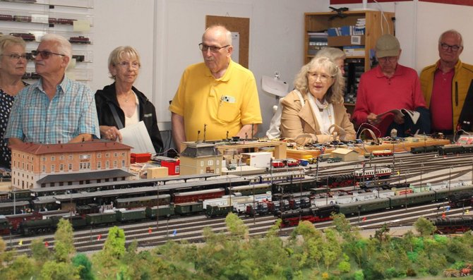 In der ehemaligen Eisenbahnerstadt Gemünden besuchten die Eisenbahner im Ruhestand die großräumige Modellbahnanlage. In der Miniaturlandschaft sind die Altstadtgebäude und die Eisenbahnanlagen der ehemaligen Kreisstadt in sehr genauen Details in vielen ehrenamtlichen Stunden original nachgebaut worden.