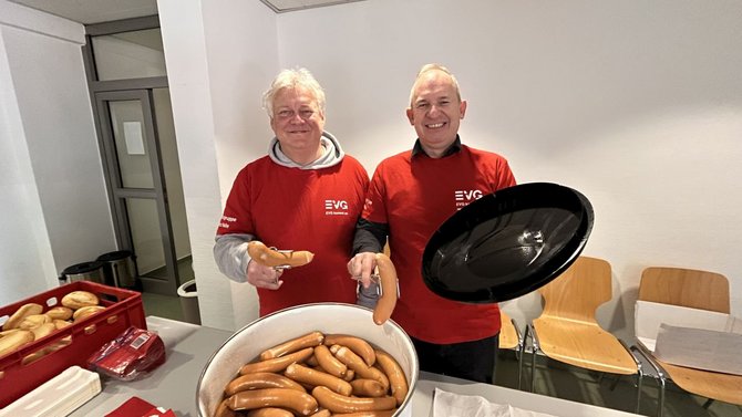Dass Wertschätzung bei der EVG nicht nur ein Wort ist, zeigte die Betriebsgruppe im Anschluss an den offiziellen Teil. Unter dem Motto „Ihr seid uns nicht Wurst!“ waren alle Kolleginnen und Kollegen zu einem gemeinsamen Bockwurst-Essen eingeladen.
