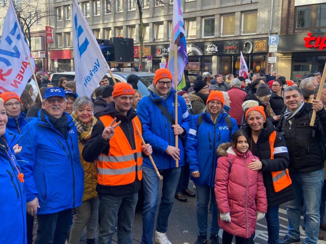 Demokratie und Frieden sind unumstößliche Grundziele der Gewerkschaftsbewegung. Um beides dauerhaft zu erhalten, müssen die Menschen an der Entwicklung der Gesellschaft beteiligt werden: Eine breite politische, wirtschaftliche und kulturelle Teilhabe ist eine der tragenden Säulen unseres Gemeinwesens. Die EVG trägt mit ihrem fortwährenden Einsatz in Gesellschaft und Wirtschaft zur dauerhaften Sicherung von Demokratie und Frieden in Deutschland und Europa bei. Die Ereignisse der vergangenen Jahre und Jahrzehnte in Europa und der Welt zeigen jedoch, dass Frieden keine Selbstverständlichkeit ist …